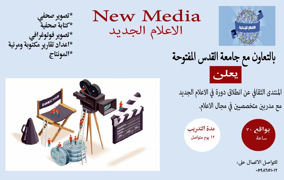 اعلان عن التسجيل في دورة للاعلام الجديد Posted byJamila Mansour 08/01/2019 Leave a comment on اعلان عن التسجيل في دورة للاعلام الجديد Share this: Click to share on X (Opens in new window) X Click to share on Facebook (Opens in new window) Facebook Like Loading... Related Published by Jamila Mansour Journalist New media Palestine🇵🇸 View more posts